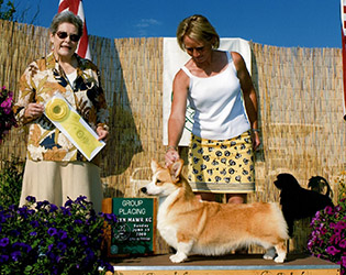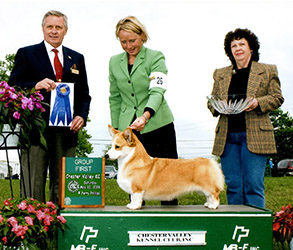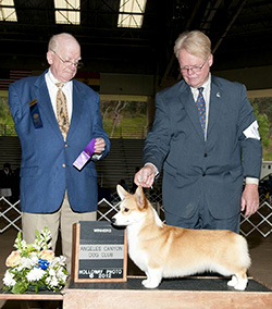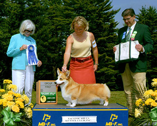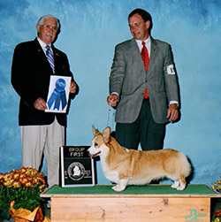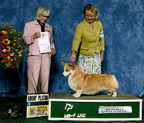She was specialed for a portion of 2008 and awarded multiple group wins. Helen was #3 Pembroke Welsh Corgi All-Systems in 2008. She is pictured below handled by Michelle and Michael Scott and to the right as a puppy by her breeder Bill Shelton.