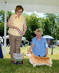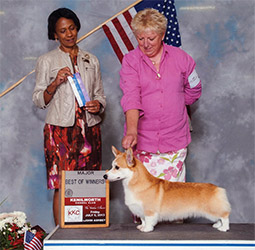She won her third major going Best of Winners under Breeder Judge Donna Gilbert, Milestone. She finished her championship going Best of Winners under Breeder Judge Kristen Francis, Stonecroft for a fourth major at the PWC Club of the Western Reserve supported entry ... all expertly handled by Sue King, Brumbaer.